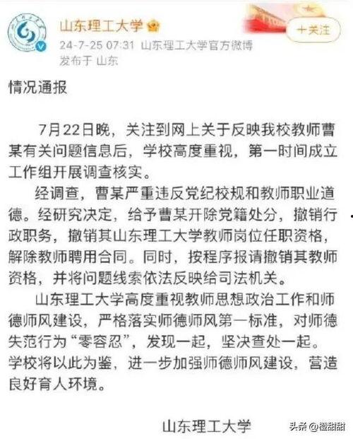 面对舆论的压力,学校方面也做出了回应。学校表示,已经对涉事老师进行了调查,并对其进行了严肃处理。同时,学校也强调,将加强对教师队伍的管理,杜绝此类事件再次发生。